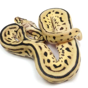 The Bumblebee Disco Hypo Leopard Ball Python is a stunning morph of the ball python species (Python regius). This particular morph combines the genetics of the Bumblebee, Disco, Hypo, and Leopard morphs, resulting in a snake with a truly unique appearance. The Bumblebee morph gives the snake a yellow and black banded pattern, while the Disco morph adds a beautiful iridescent sheen to its scales. The Hypo morph reduces the dark pigmentation, creating a lighter overall coloration, and the Leopard morph enhances the pattern with bold spots and markings.