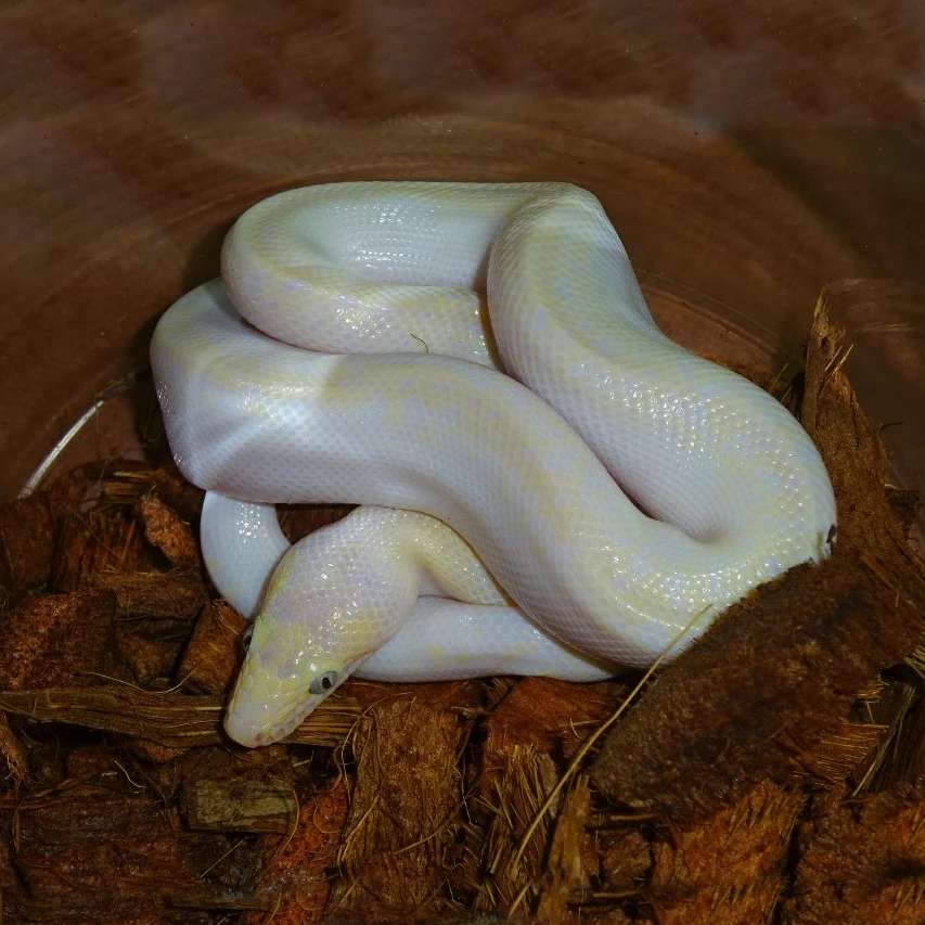 The Baby Blue Eyed Leucistic Colombian Rainbow Boa is a small-sized snake that grows to a manageable length of three to four feet. Its natural wild morph features a light brown and tan coloration. However, through selective breeding, breeders have been able to produce an ivory-colored variant with stunning blue eyes. This unique coloration sets the Baby Blue Eyed Leucistic Colombian Rainbow Boa apart from other snake species.