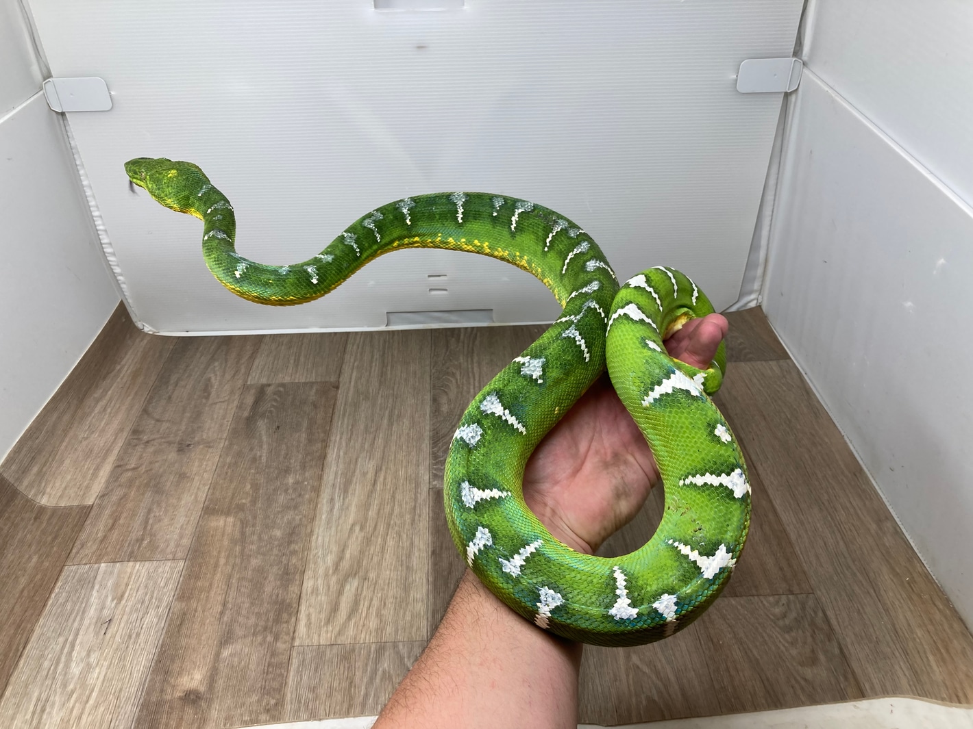 - Handling: While High White Emerald Tree Boas can tolerate handling, it is important to approach them with caution and respect their natural behavior. Avoid handling them for at least 48 hours after feeding to prevent regurgitation.