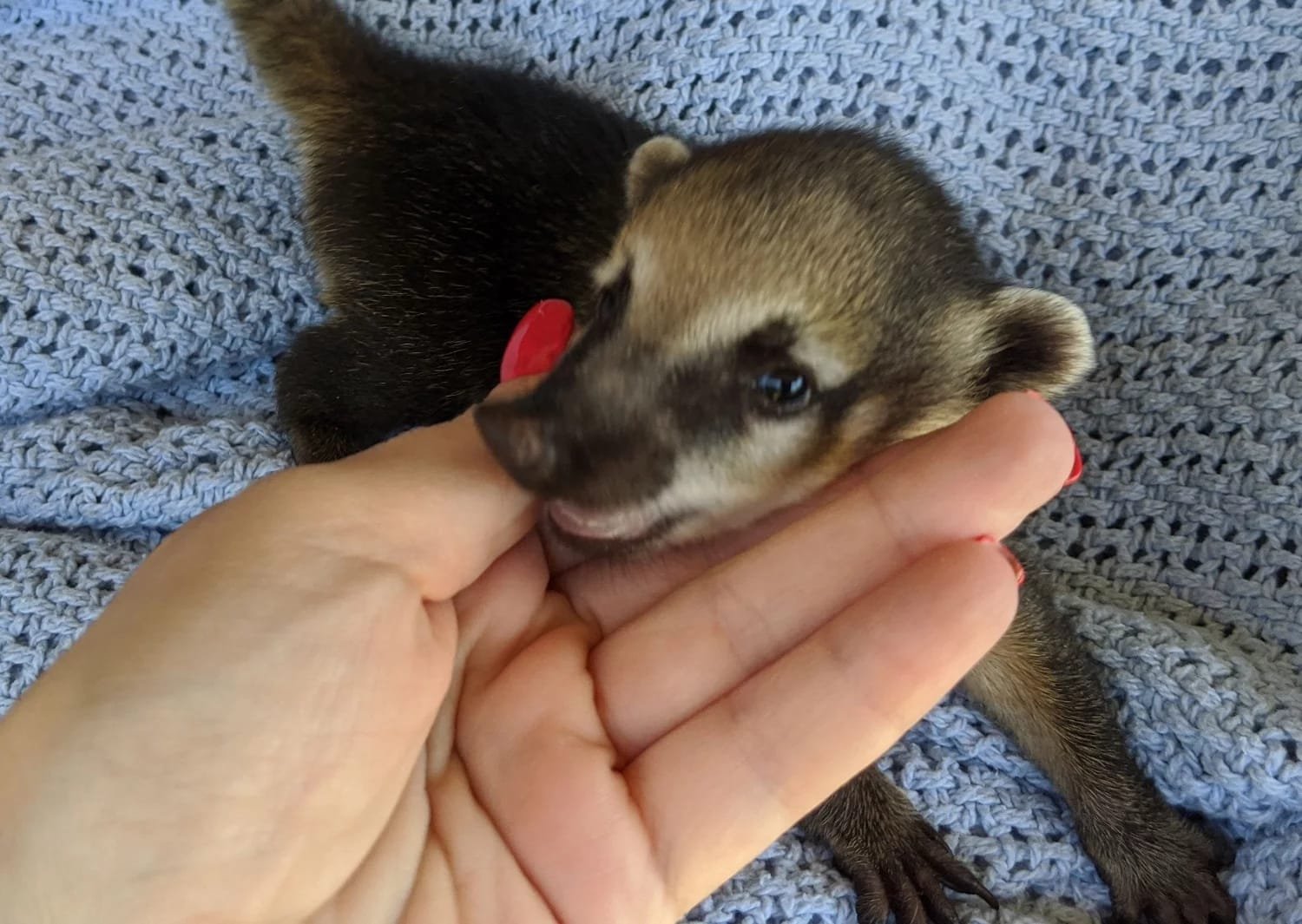 It is vital to spend as much time as possible with your newborn during the first few weeks in order to bond with it. Hand-feed it, and spend time playing and relaxing with it. Allow it to get as much time out of the cage as possible to familiarize itself with you and its new surroundings. A well-behaved coati could/should be let out of the cage for several hours each day or evening after the relationship has been developed. After the relationship has been created, one-on-one bonding time is not required, but they will still crave your attention and play time long after they are no longer considered babies.